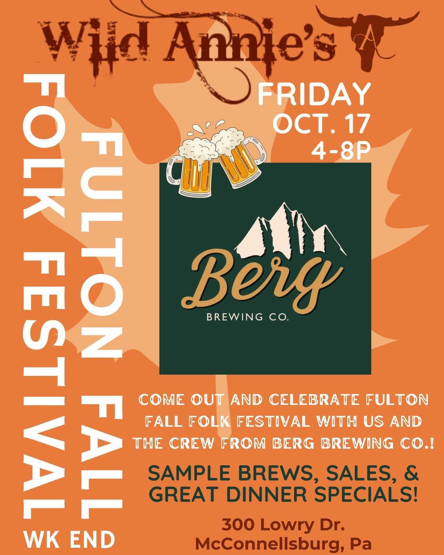 Come out and celebrate Fulton Fall Folk Festival with us and the crew from Berg Brewing Co.! Sample brews, sales, & great dinner specials!